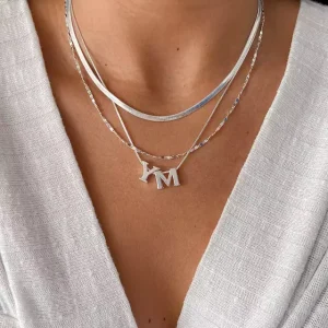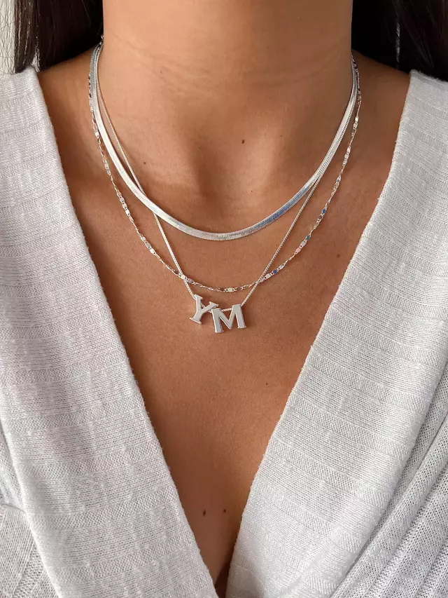 O mix de colares é uma opção super estilosa e descolada para montar um look ainda mais interessante. Inclusive é um dos meus favoritos. Esse é o Kit Letters em prata, conta com corrente achatada, corrente lisa e um colar que pode vir com até 2 letras. Esse mix não é só bonito, ele tem significado. Porque com ele você carrega as iniciais das pessoas mais importantes da sua vida.