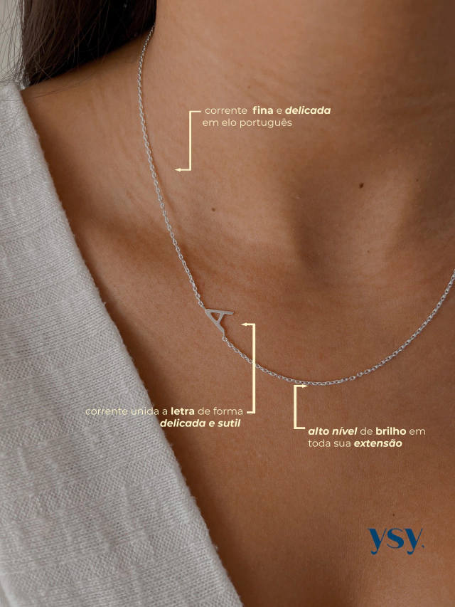 Esse modelo é perfeito para quem ama acessórios discretos, mas cheios de significado. A corrente fina em elo português traz leveza e elegância. Então, o resultado é um colar moderno, limpo e com um brilho suave que valoriza o colo sem pesar.
