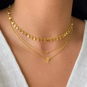 A letra no centro do colar é aquele detalhe pequeno, mas cheio de significado. Uma inicial delicada, minimalista e perfeitamente integrada à corrente, que traz personalidade sem chamar mais atenção do que deveria. É sutil, feminina e sofisticada na medida certa.