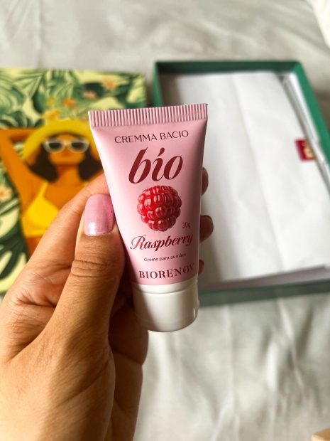 Creme para mãos Biorenov: esse creme possui o aroma mais gostoso que existe, sério. Nunca tinha usado um creme tão cheiroso. Porque é de framboesa bem adocicado, parece que estou passando a fruta nas mãos. Mas além do aroma, espalha fácil pelas mãos e absorve bem.
