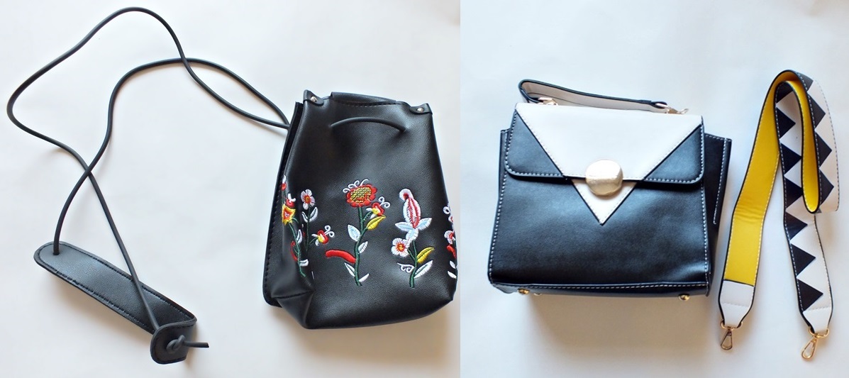 Essas foram as últimas peças que chegaram da loja. Uma bolsa transversal bordada e que pode ser amarrada de várias maneiras. Também chegou uma bolsa tiracolo com fecho magnético e com alça colorida, pode ser usada doa dois lados. Ambas as bolsas são sintéticas, lindas e de qualidade.