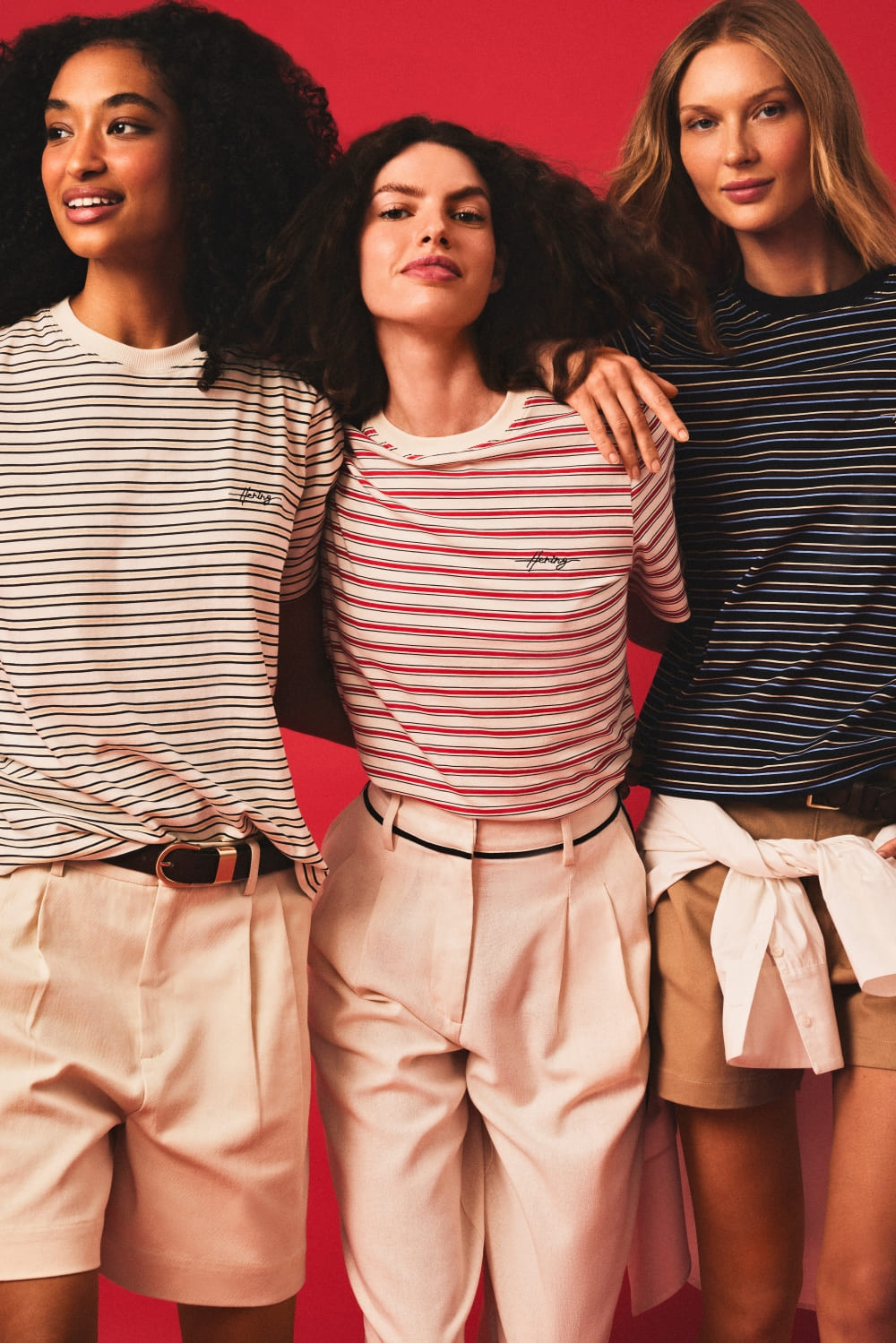 Para começar, as modelagens queridinhas da marca chegam renovadas. Pois agora, ganham cores mais vivas, listras repaginadas e pequenos detalhes que fazem toda a diferença. As regatas e camisetas aparecem cheias de vida. Além disso, as peças são 100% algodão, o que reforça o DNA clássico da Hering com estampas heritage delicadas e atemporais.