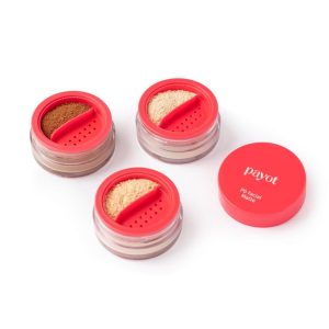 - Pó Facial Matte (3 tons): textura ultrafina, resistente à água, ideal para selar e finalizar.