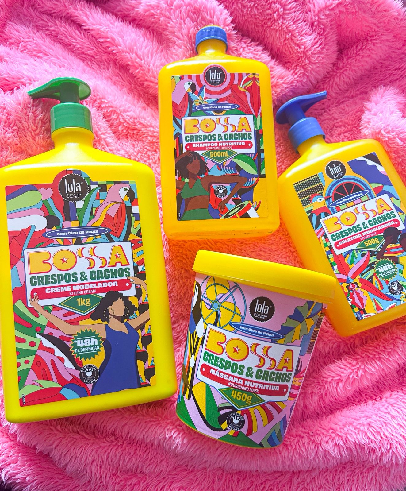 Essa linha me agradou a princípio pela quantidade de produto. Afinal, para as cacheadas e crespas, nada melhor do que potes de finalizadores com mais de 500 g e se tiver de 1kg, como a linha Bossa da Lola Cosmetics, é ainda melhor.