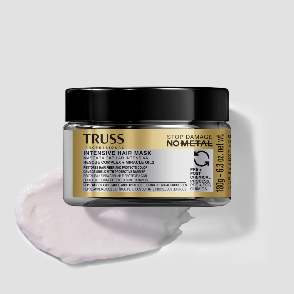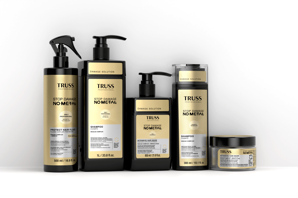 A TRUSS passa a oferecer uma experiência contínua, pois assim a cliente consegue prolongar o tratamento do salão em casa. Afinal, a linha No Metal já contava com itens profissionais exclusivos para cabeleireiros, como o Stop Damage No Metal Shampoo 1L, a Intensive Mask e o Protect Fluid, perfeitos para uma limpeza profunda, redução de metais, reparação intensa e proteção durante o uso de químicas mais pesadas, como descolorações e alisamentos.