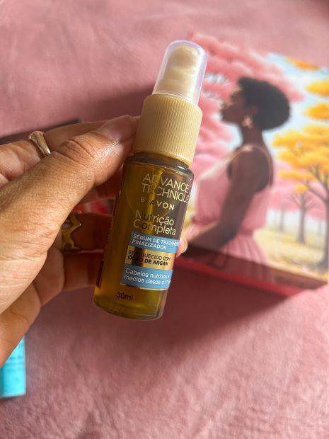 Advance Techniques by Avon: O Sérum Finalizador Nutrição Completa é aquele toque de luxo que transforma o cabelo em segundos. Pois ele nutre profundamente, sela as cutículas e controla o frizz, revelando fios com brilho espelhado e toque de seda. Com textura leve e fórmula sem parabenos, o sérum combina óleos de argan e milho que hidratam intensamente e protegem os fios contra o ressecamento. Então é ideal para usar antes do secador ou como finalizador, garante um visual polido, macio e naturalmente radiante.