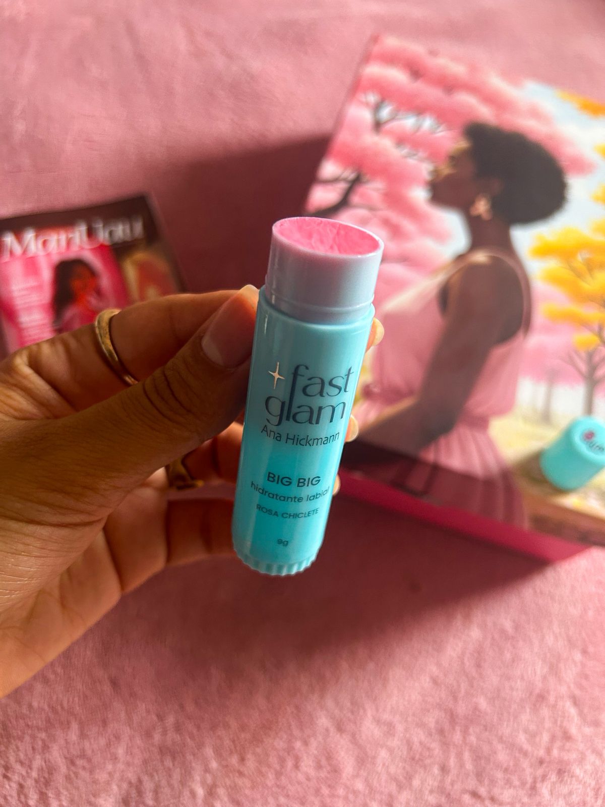 Hidratante Labial Ana Hickmann: O hidratante Big Big vem com o dobro da quantidade dos produtos convencionais. Mas além disso, também possui alto poder hidratante. Essa é a cor rosa chiclete e vem com cheirinho característico bem intenso. Mas fica transparente nos lábios.